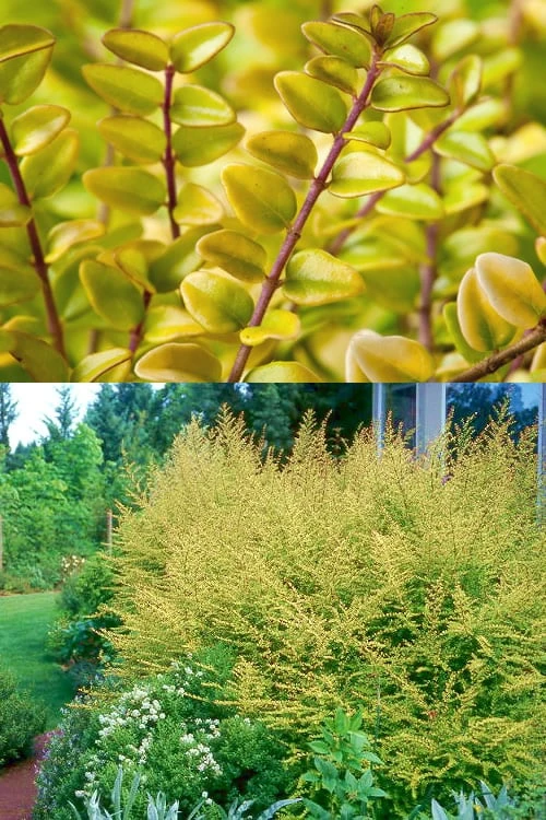 A favorite shrub around the world, the Baggesen’s Gold Box Leaf Honeysuckle features dainty, golden-yellow evergreen boxwood-like leaves on cascading branches that form a dense, soft-textured mound 3 to 5 feet tall and wide which lights up the garden. Responds very well to shearing so is an excellent candidate for stunning hedges or various topiary shapes in landscape beds or containers.