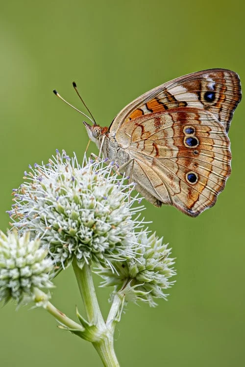 The Rattlesnake Master plant starts the growing season as an upright clump of attractive, sword shaped bluish leaves. In summer, branched stems rise above the foliage featuring globe-shaped flower clusters packed with small creamy white florets the butterflies and other beneficial pollinators will appreciate. Spent flowers can be left on the plant providing winter interest in the garden. Very easy to grow in a sunny site with well-drained to dry soil, Rattlesnake Master is a striking architectural plant that is sure to stand out in the garden!