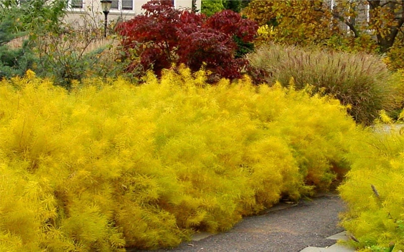 An easy-to-grow and beautiful North American native flowering perennial that won the 2011 Perennial Plant Association’s Plant of the Year Award, the Threadleaf Blue Star, Amsonia hubrichtii, provides three season interest in the garden. In spring, the needle-like deep green foliage has a soft, feathery appearance that is sure to attract attention. In spring to early summer, abundant clusters packed with pretty, star-shaped, sky-blue flowers crown plants at the top of every stem attracting both visual attention and the butterflies. But one of this plants most attractive features is the bright and rich golden-yellow fall foliage, which is something we always look forward to seeing in our gardens.