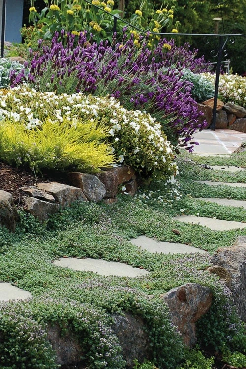 Spacing: 18″ apart for mass plantings; 6-12″ apart between stepping stones